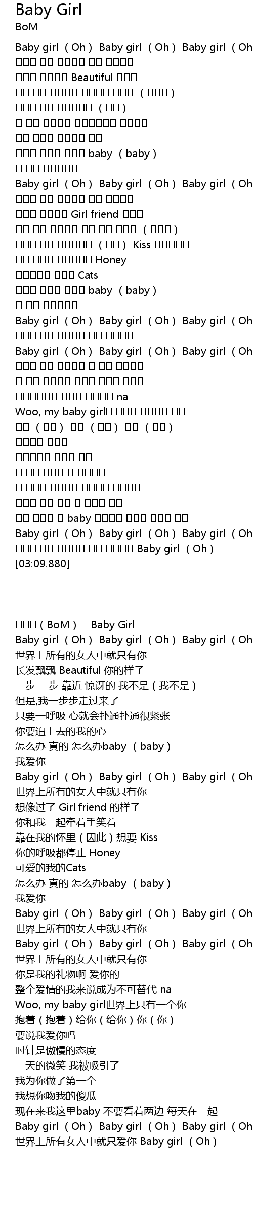 | [01:51.100] | Baby girl Oh Baby girl Oh Baby girl Oh |