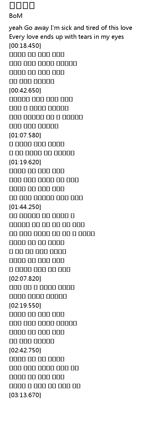 | [01:48.050] | 꺼질거니까 니가 울고 불고 해도 지쳤어 |