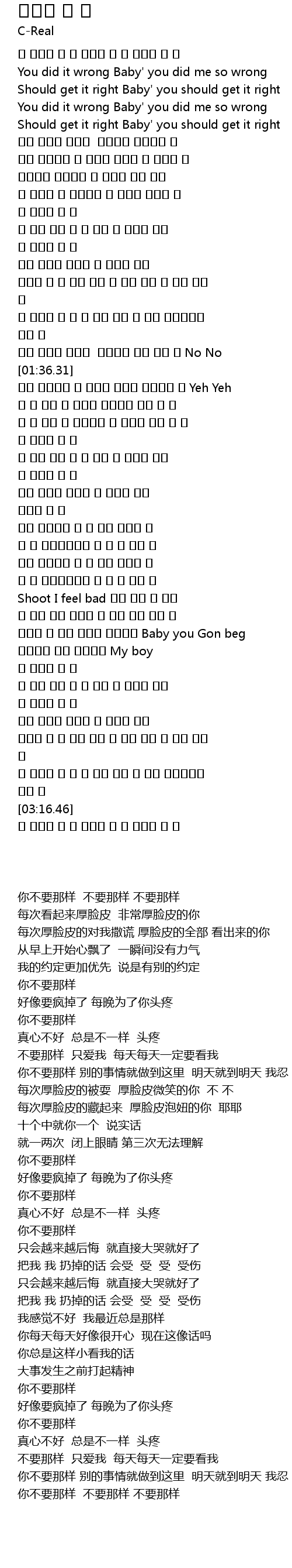 [01:37.96] 매번 뻔뻔하게 날 숨기고 뻔하게 바람피는 너 Yeh Yeh