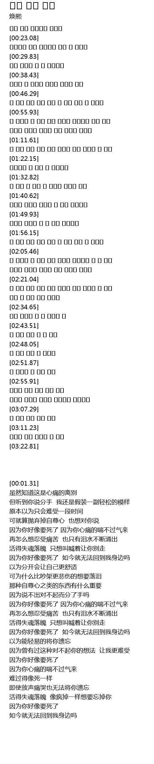 너 땜에 죽을 것만 같아 이제는 내게 돌아올 수 없니 |