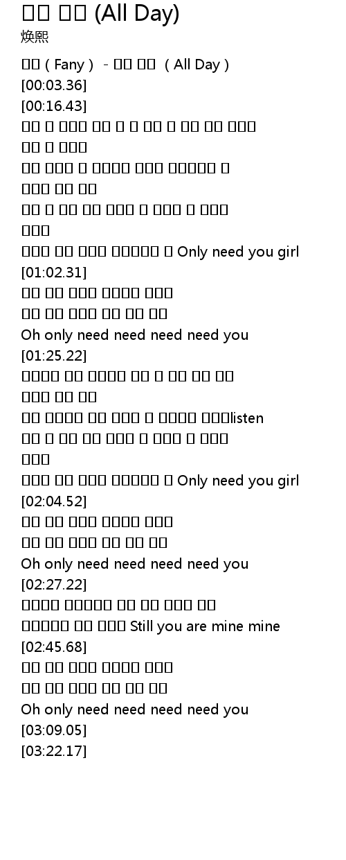 | [00:00.08] | 환희(Fany) - 하루 종일 (All Day) |