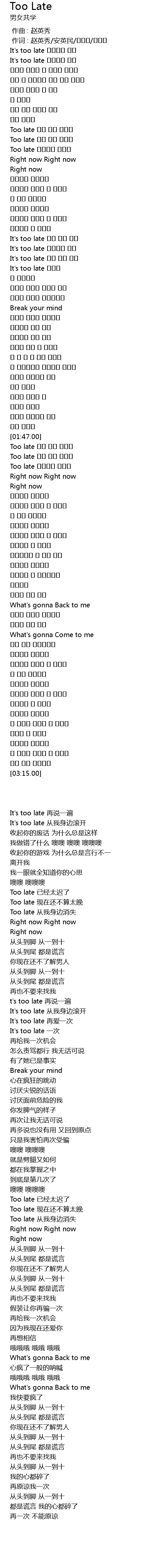 | [01:47.53] | Too late 너무 늦어 버렸어 |