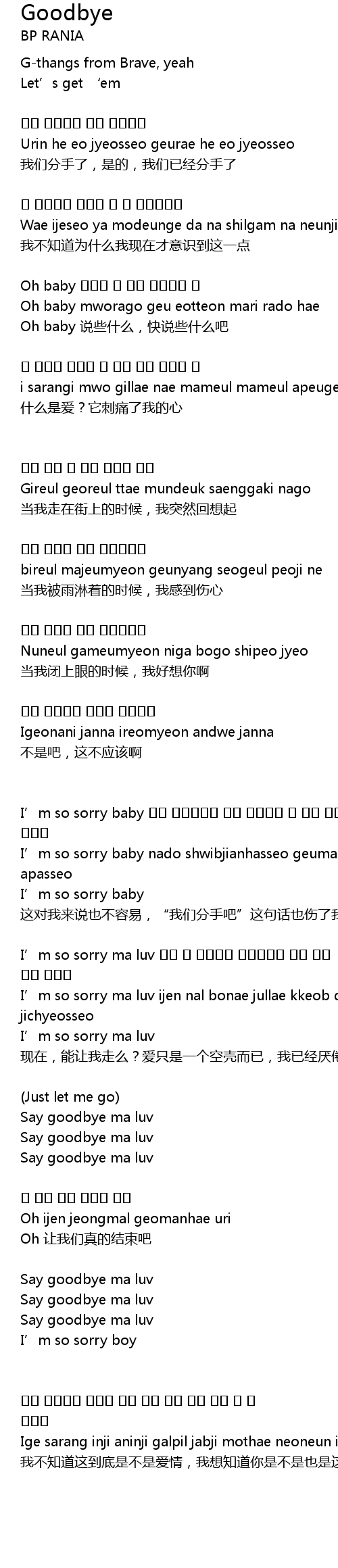 | I' m so sorry baby nado shwibjianhasseo geuman he eo jijan mal nado mani apasseo | |