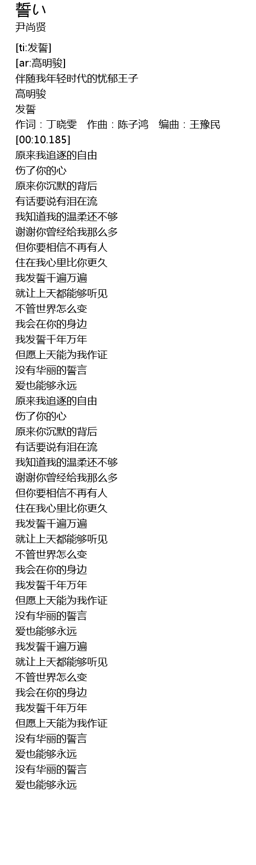 | [01:47.617] | wǒ fā shì qiān nián wàn nián |