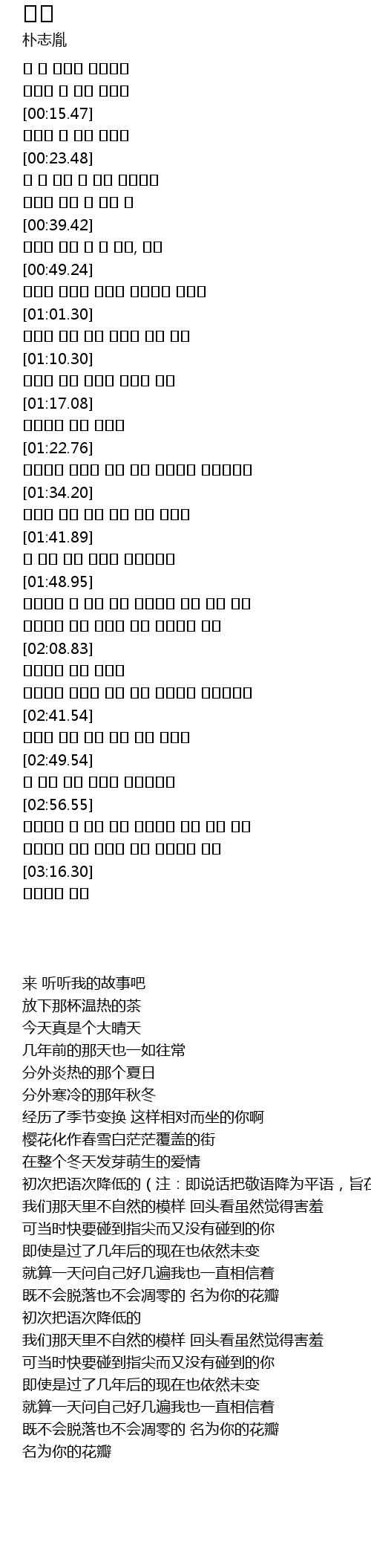 | [01:59.08] | 떨어지지 않는 시들지 않는 그대라는 꽃잎 |