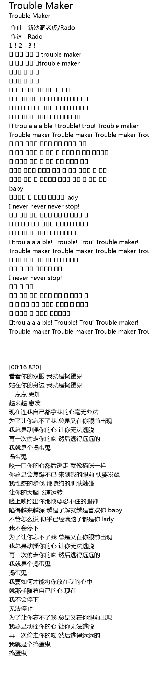 | [03:15.330] | Trouble maker Trouble maker Trouble maker Trouble maker |