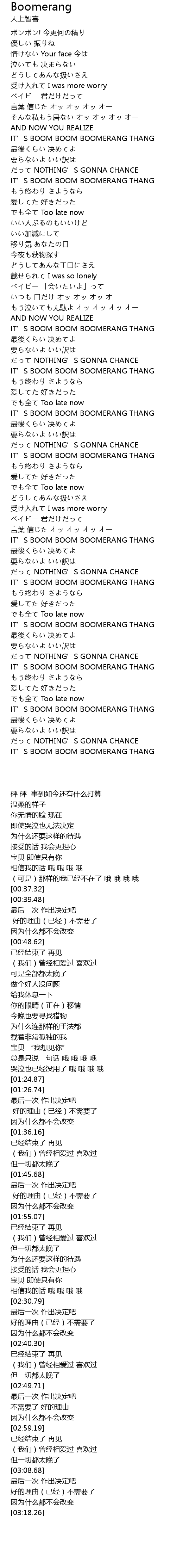 | [00:39.48] | IT' S BOOM BOOM BOOMERANG THANG |