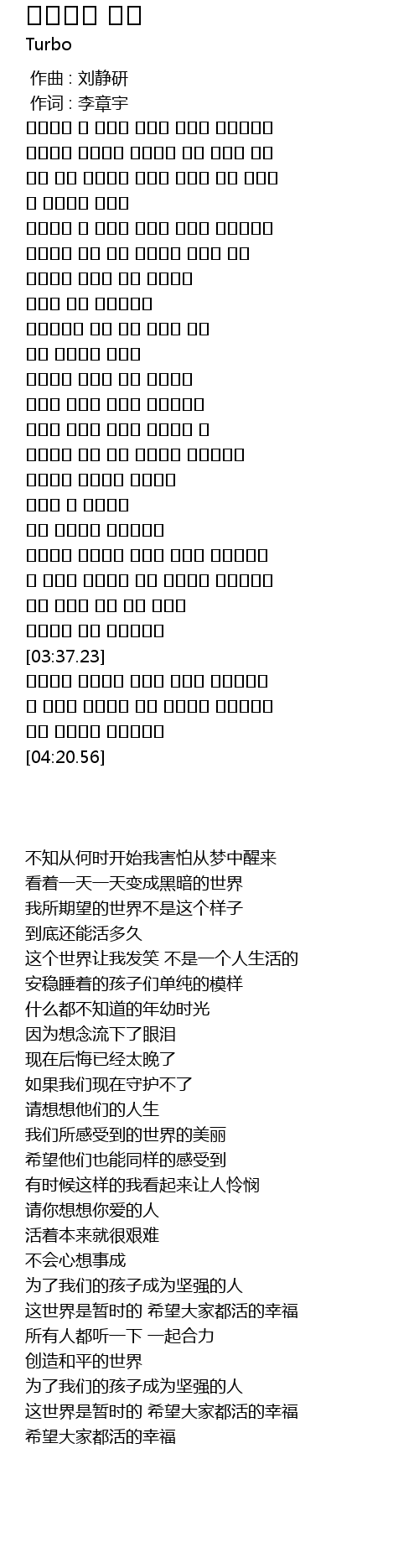 | [03:54.15] | 이 세상은 잠시일뿐 모두 행복하게 살아야해요 |
