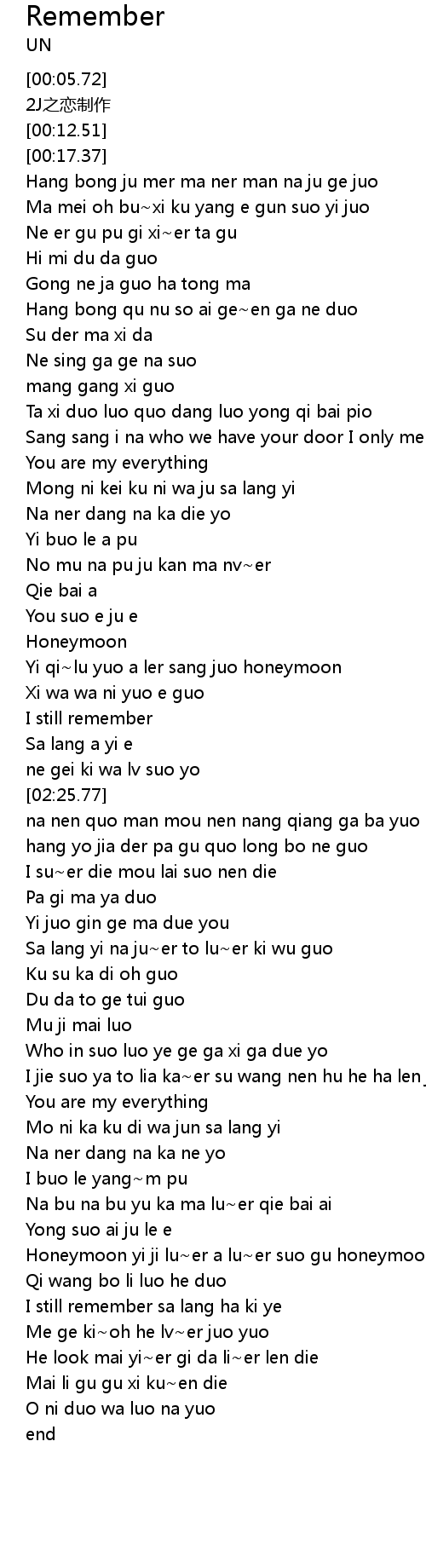 | [04:05.20] | I still remember sa lang ha ki ye |