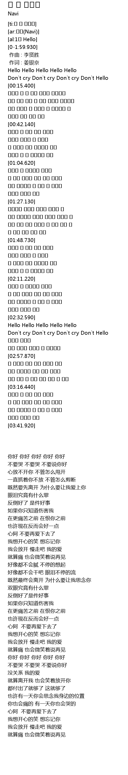 | [00:07.960] | Don t cry Don t cry Don t cry Don t Hello |