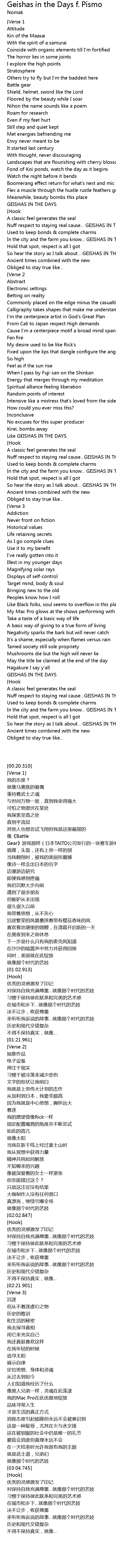| [03:07.546] | Nuff respect to staying real cause...GEISHAS IN THE DAYS |