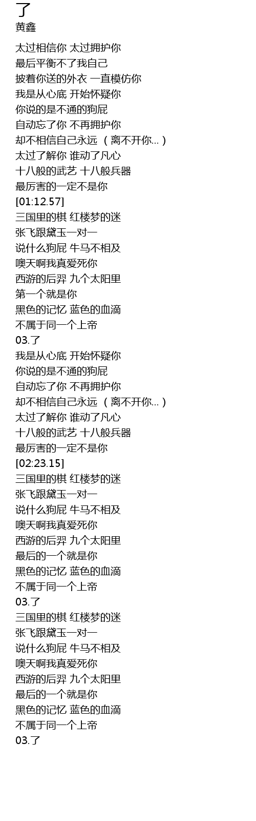 | [02:05.41] | que bu xiang xin zi ji yong yuan li bu kai ni... |