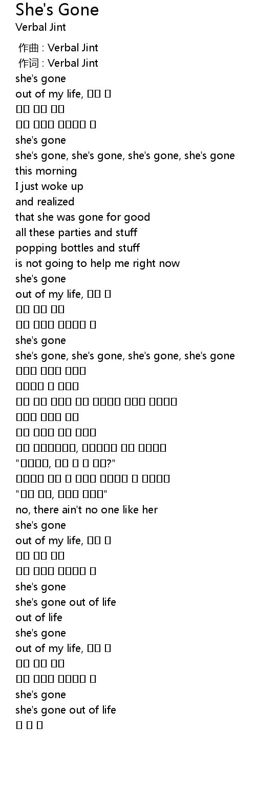 | [00:49.740] | she' s gone, she' s gone, she' s gone, she' s gone |