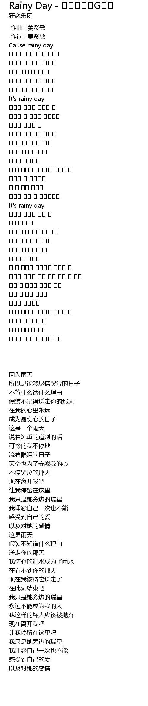 Rainy Day G Lyrics