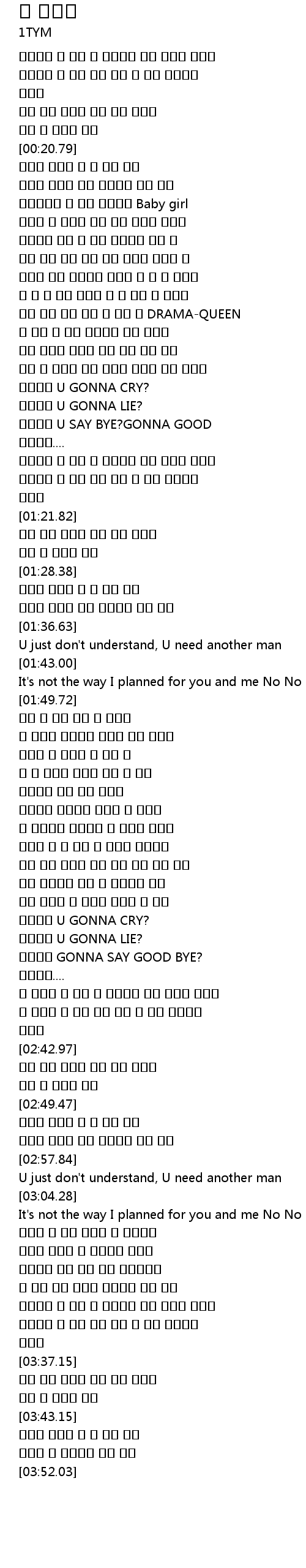 | [01:02.38] | 몇번이나 U GONNA CRY? |