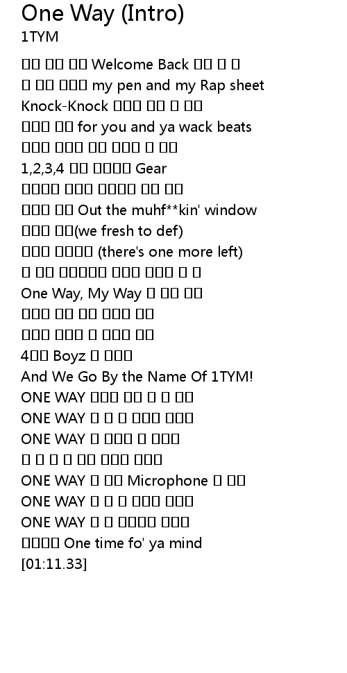 | [01:01.61] | ONE WAY 한 손엔 Microphone 꽉 쥐고 |