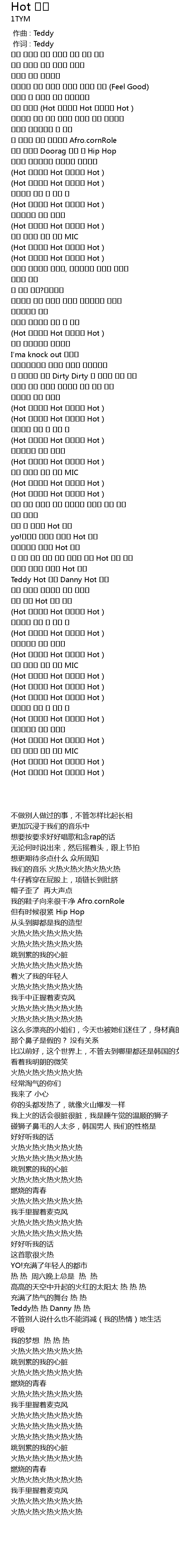 | [01:09.010] | (Hot 뜨거뜨거 Hot 뜨거뜨거 Hot ) |