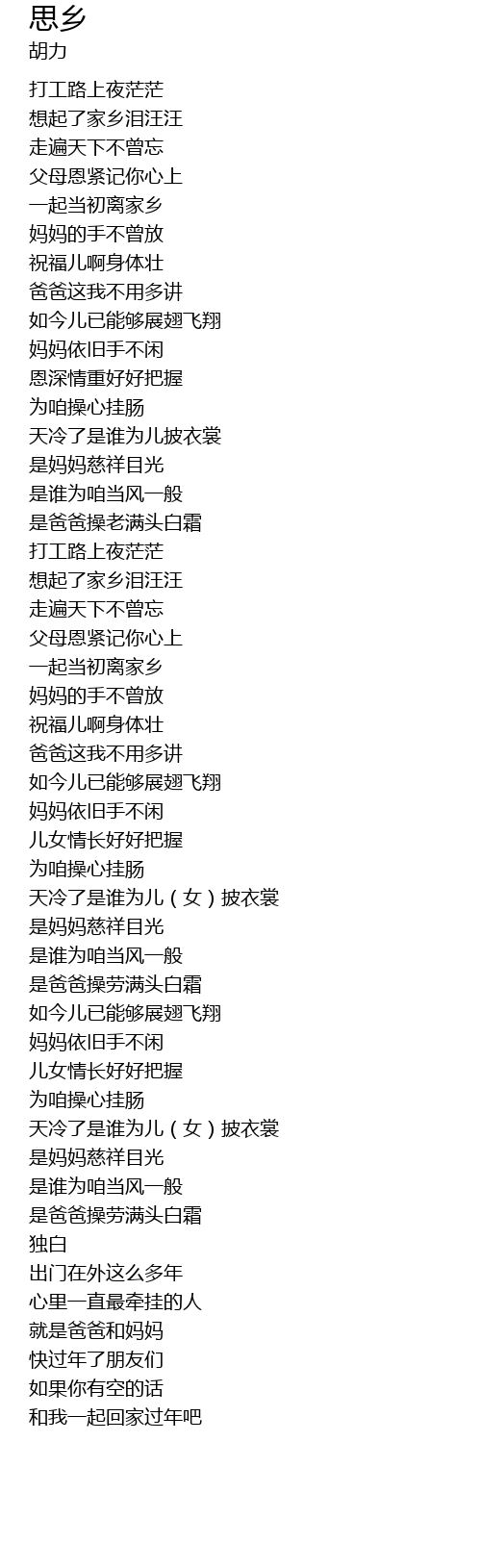 | [00:24.69] | 打工路上夜茫茫 |