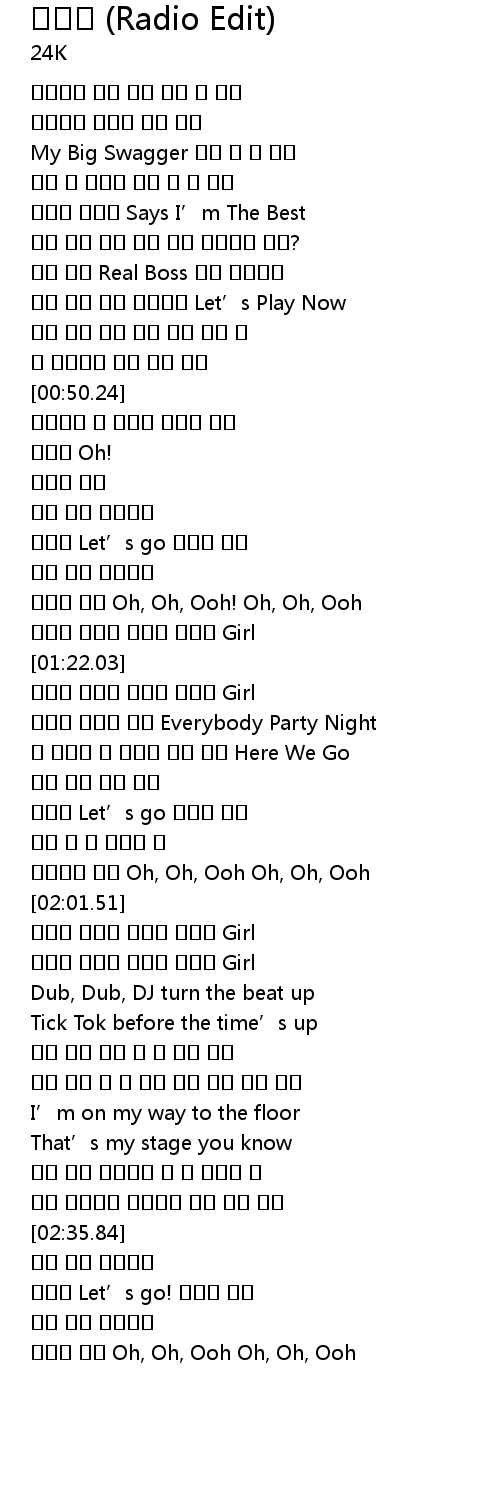 | [02:51.37] | 비트를 타고 Oh, Oh, Ooh Oh, Oh, Ooh |