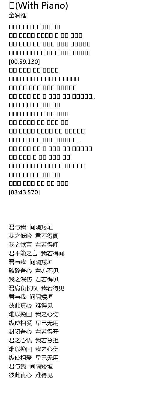| [00:19.660] | 내가 하는말이 당신에겐 가 닿지 않아요 |