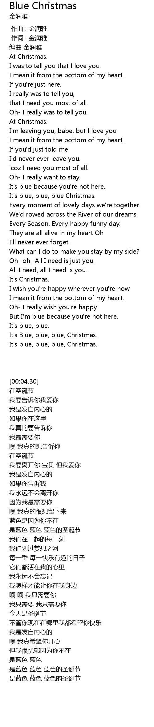 | [03:04.56] | It's Blue, blue, blue, Christmas. |