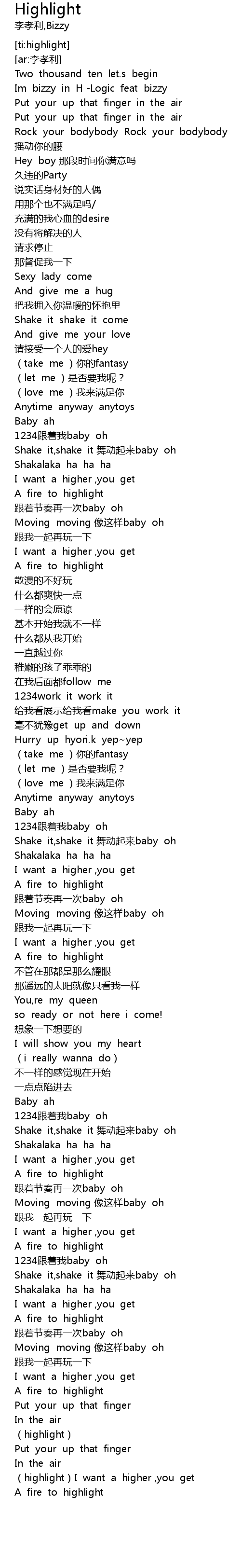 | [03:32.680] | (highlight)I want a higher ,you get |