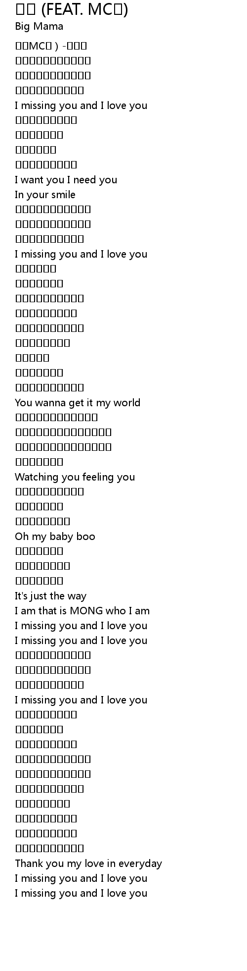 | [02:11.183] | I missing you and I love you |