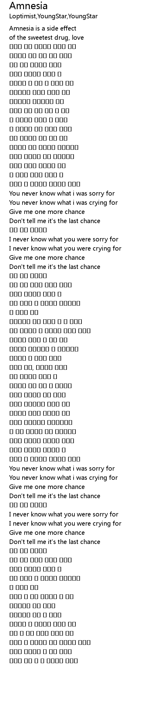 | [02:41.000] | 그만큼 난 무너지며 의심했어 건망증 |