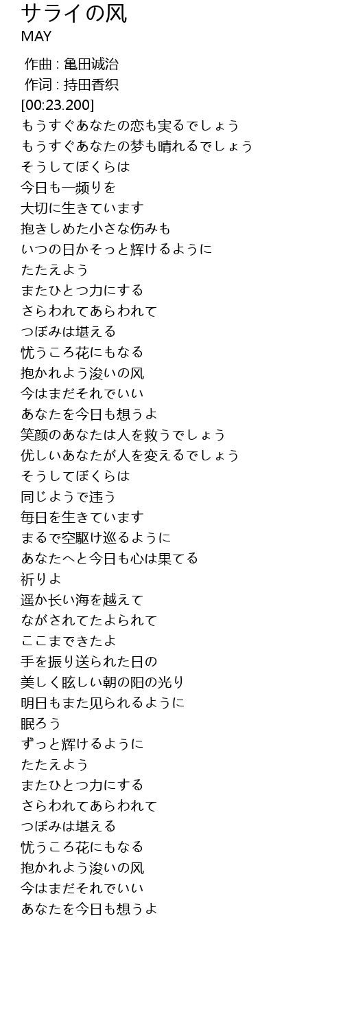 | [00:51.780] | 抱きしめた小さな伤みも |