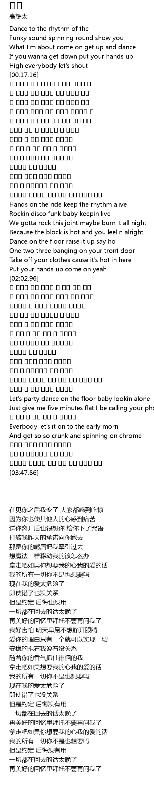 | [00:15.98] | High everybody let' s shout |