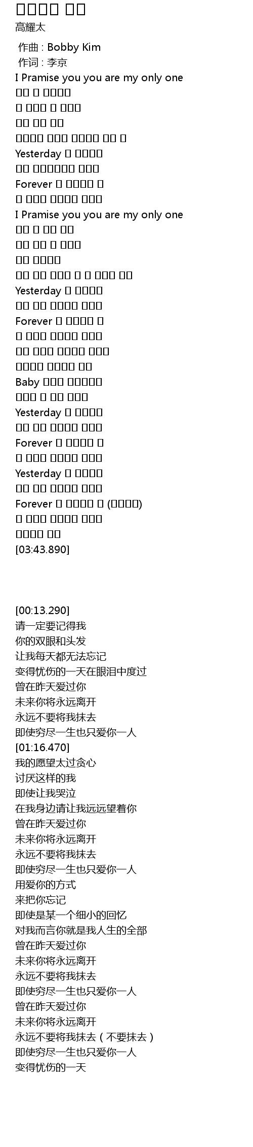 | [00:00.00] | zuò qǔ : Bobby Kim |