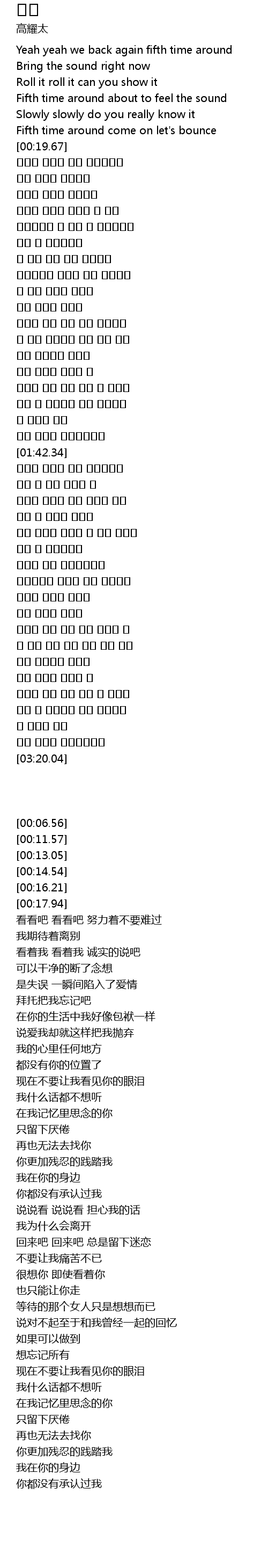 | [00:40.19] | 나를봐 나를봐 솔직하게 |