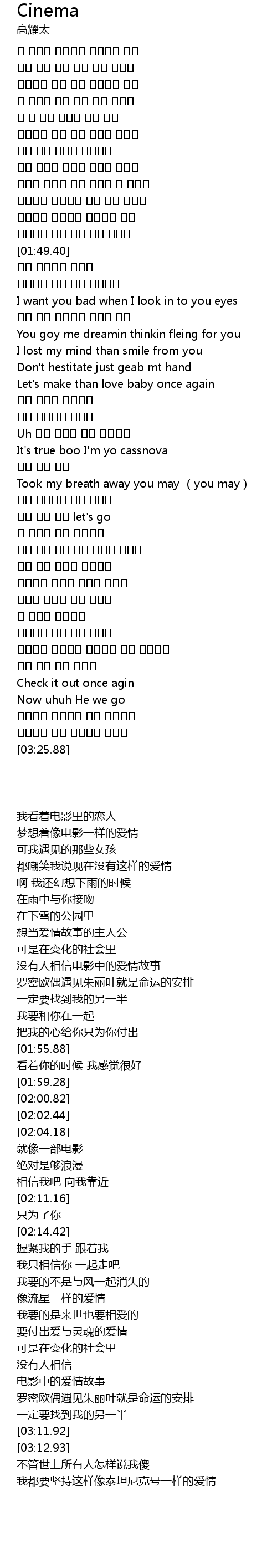 | [00:36.18] | 꿈꿔 왔어 멋진 영화 같은 사랑을 |