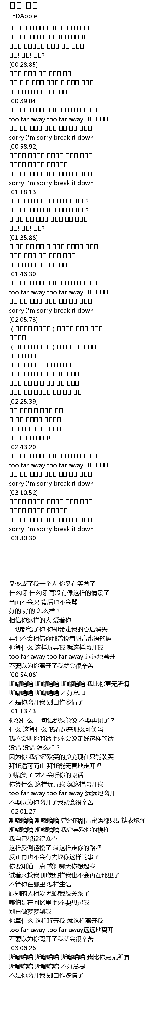 | [00:44.90] | too far away too far away 멀리 떠나가 |