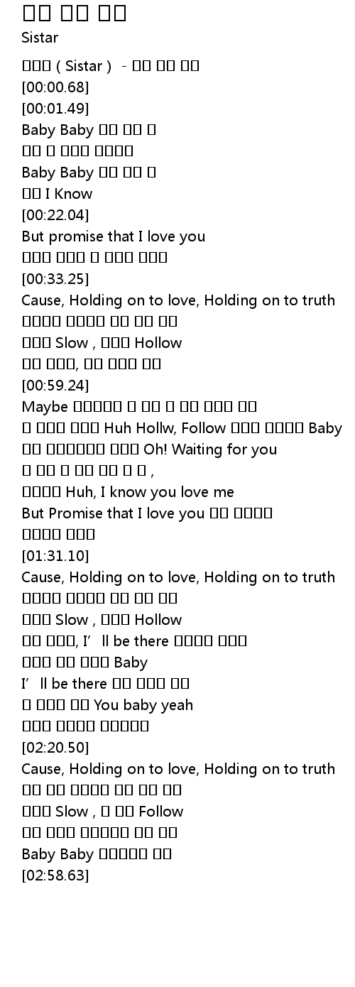 | [00:13.66] | Baby Baby 속이 타는 걸 |
