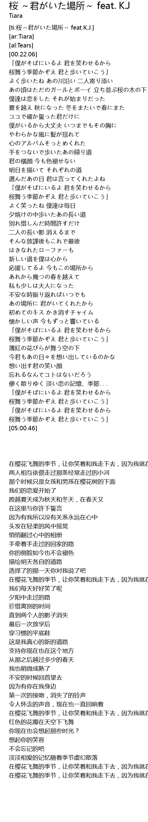 | [ti:桜~君がいた場所~ feat.K.J.] | |