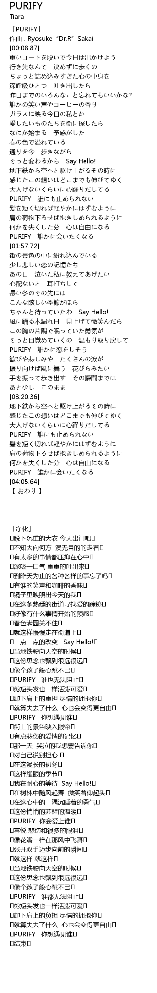 | [01:52.25] | PURIFY 誰かに会いたくなる |