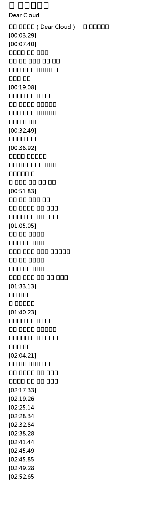 | [00:00.19] | 디어 클라우드(Dear Cloud) - 널 위해서라고 |
