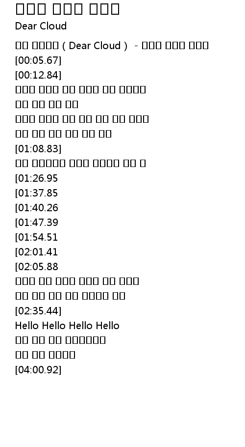 | [03:13.11][01:47.39] | Hello 그댄 변한게 없네요 |
