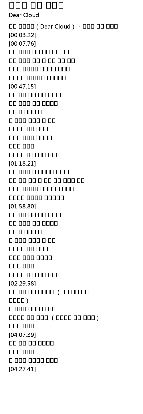 | [00:00.10] | 디어 클라우드(Dear Cloud) - 지금은 알지 못해도 |