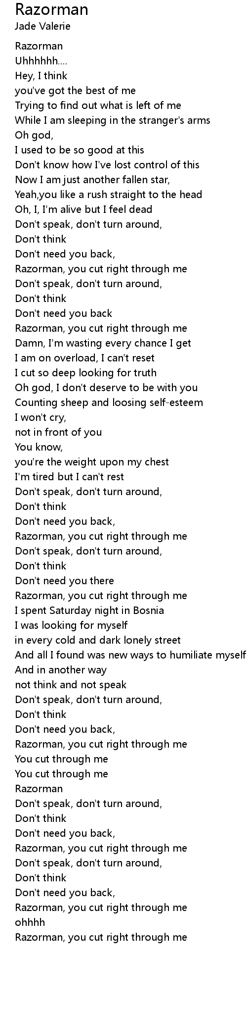 Razorman, you cut right through me |