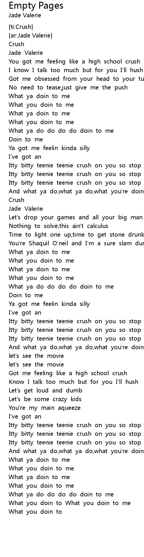 Itty bitty teenie teenie crush on you so stop your teasin' |
