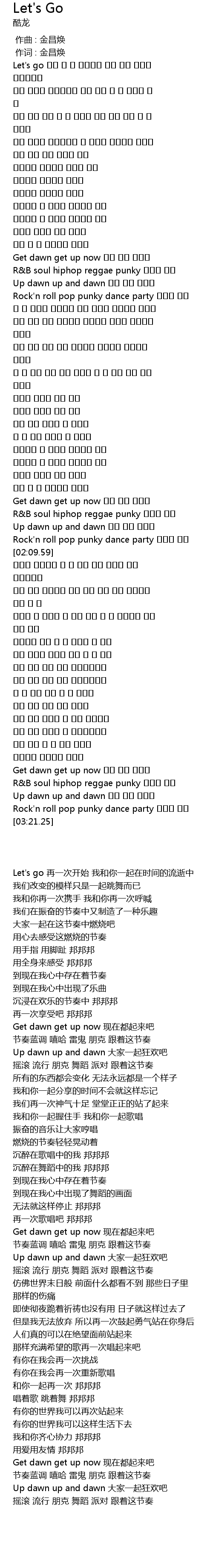 | [02:01.34] | Up dawn up and dawn 모두 함께 즐기자 |
