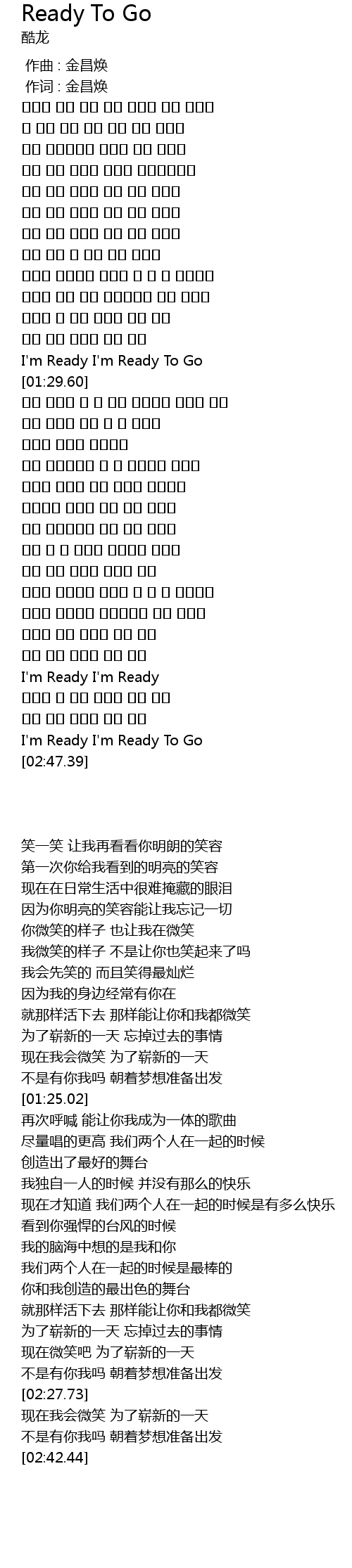 | [00:01.00] | 作词 : 金昌焕 |