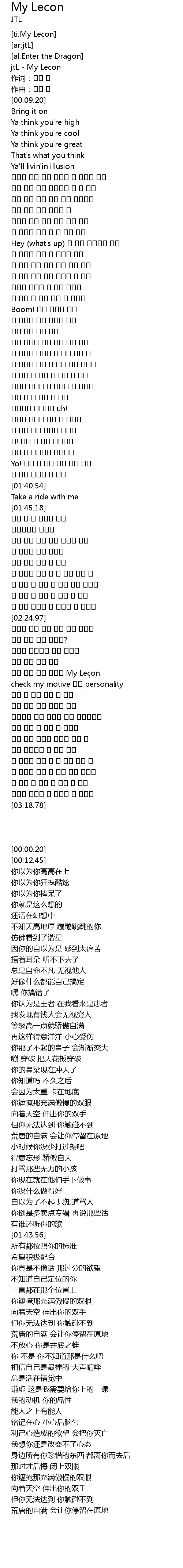 | [00:00.20] | jtL My Lecon |