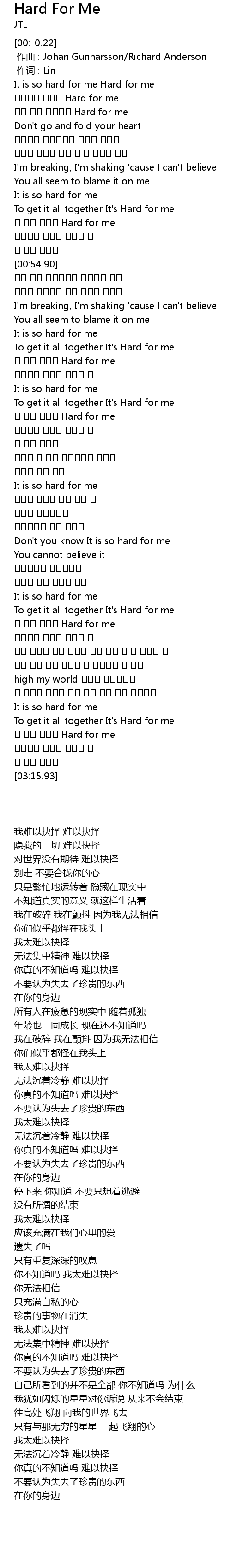 | [03:02.05] | To get it all together It' s Hard for me |