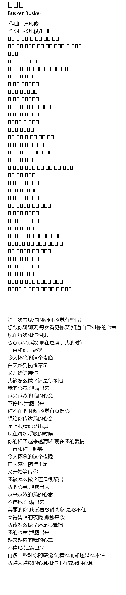 | [00:01.00] | 作词 : 张凡俊/장기준 |