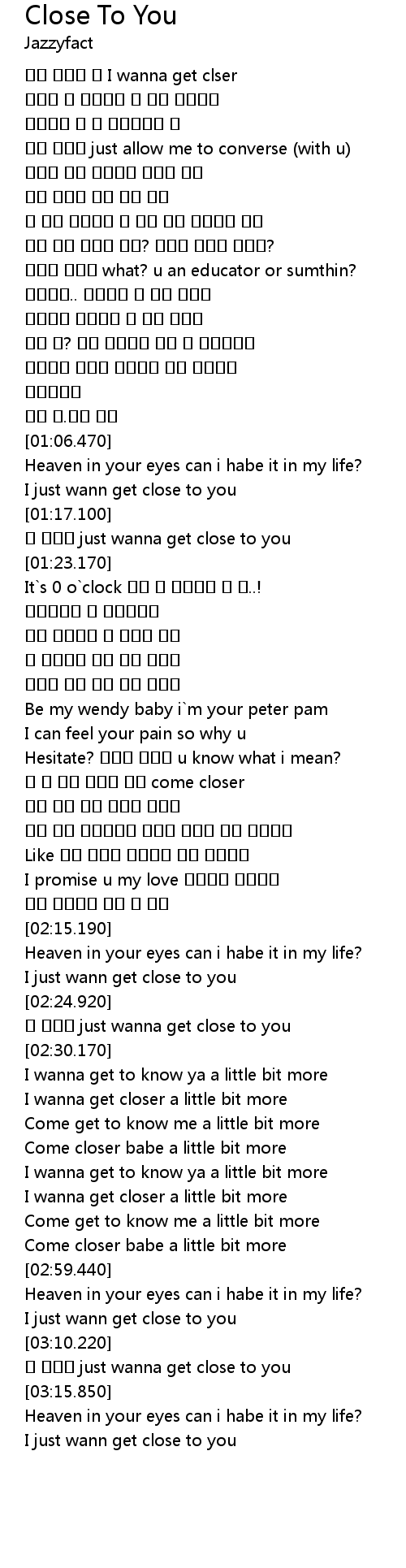 | [03:08.000] | I just wann get close to you |