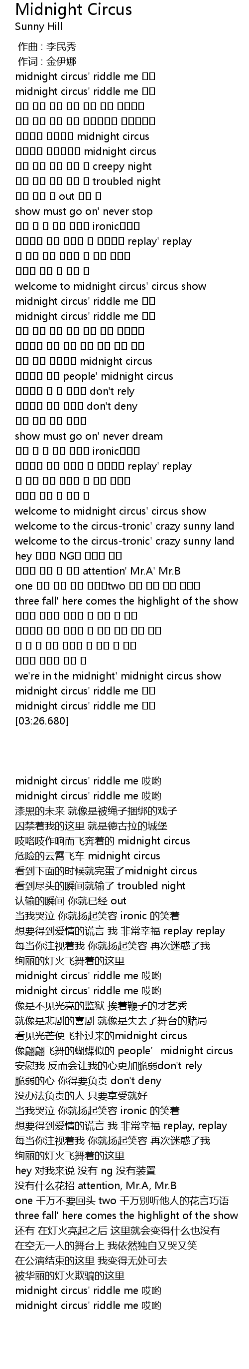 | [03:19.710] | midnight circus' riddle me 어머 |