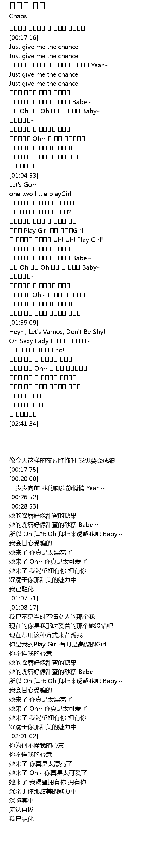 | [02:01.02] | Hey~, Let's Vamos, Don't Be Shy! |